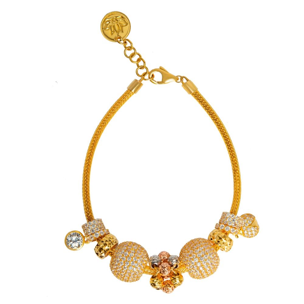 Sản phẩm nằm trong bộ Lắc tay Summer Love, với thiết kế dây vặn độc đáo đặc trưng. Được làm từ chất liệu 18k, lắc hoa đa sắc mang điểm nhấn là bông hoa đa sắc màu, được tạo nên từ tổ hợp hạt châu nhỏ xinh. Thêm vào đó, dãy hạt charm vàng cùng các hoa tiết khác được chạm khắc tinh xảo, phủ đá Sapphire trắng, mang đến vẻ hoàn hảo cho tổng thể sản phẩm. Lắc tay Summer Love Hoa Đa Sắc đem đến nét trẻ trung, tràn đầy năng lượng tích cực, là lựa chọn lý tưởng cho những dịp dạo phố, dã ngoại cùng gia đình, bạn bè.