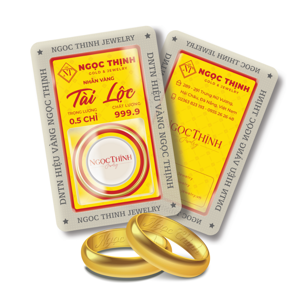 Nhẫn tròn trơn ép vỉ Tài Lộc, sản xuất bởi Ngọc Thịnh với chất lượng chuẩn 999.9, hoàn thiện sắc xảo, tỉ mỉ, đáp ứng được nhu cầu: Đầu tư - Tích trữ - Quà tặng.